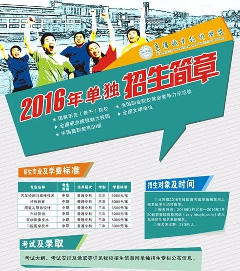 襄阳职业技术学院2016年单独招生简章